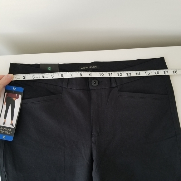 New with tags women's Banana Republic Slim Straight Cropped Pants in a size 10. Color is black.