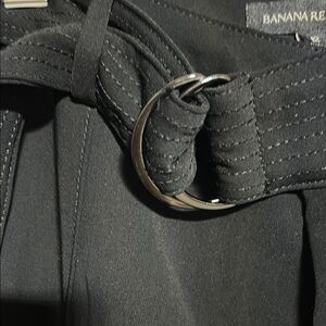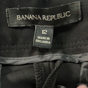 Experience the elegance of Banana Republic's black trousers, featuring a wide-leg design for a timeless silhouette. Crafted from a structured fabric, these trousers offer a polished look perfect for business or formal settings. The classic pressed creases add to their professional charm.