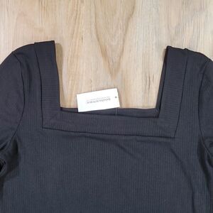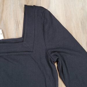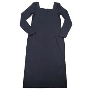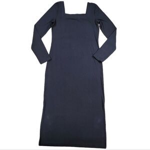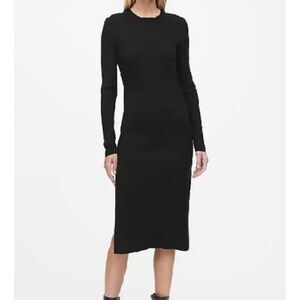 🔹️NWT Banana Republic Black Ribbed Long Sleeve Square Neck Midi Dress Medium