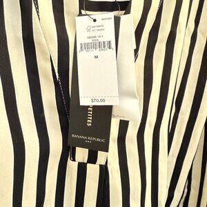 NWT Banana Republic Blouse Top Ivory/Black Striped V Neck Pullover