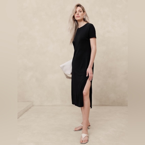 NWT Banana Republic Crepe Knit Midi T-Shirt Black Dress Size Medium.