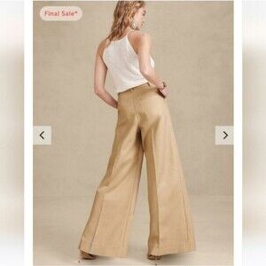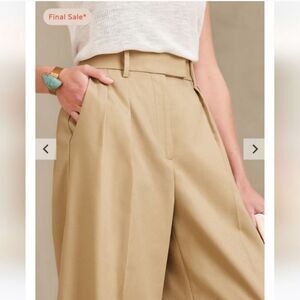 New with tags Banana Republic Cruise wide leg pants trousers. high-rise waisted and pleated. The color is a beautiful neutral light tan called Maverick Tan.