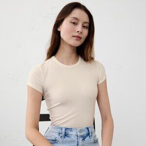 NWT Banana Republic Factory Variegated Ribbed T-Shirt Snow Day White Size S