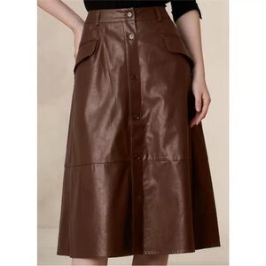 NWT Banana Republic Factory Vegan Faux Leather Brown A Line Button Midi Skirt