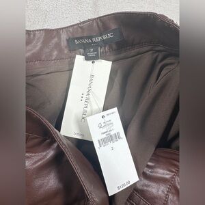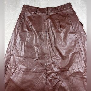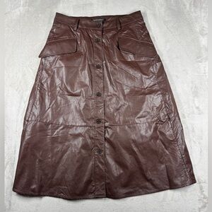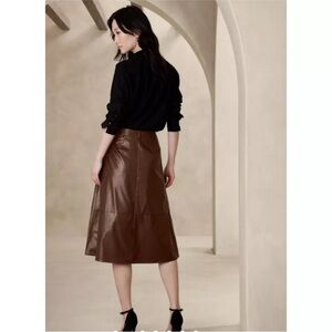 NWT Banana Republic Factory Vegan Faux Leather Brown A Line Button Midi Skirt 2