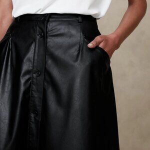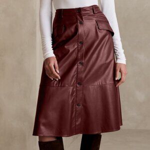 NWT Banana Republic Factory Vegan Leather Midi Skirt Bordeaux Kiss 0
