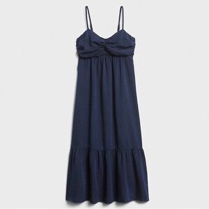 NWT Banana Republic Front Knot Chambray Midi Dress Navy Blue / Dark Indigo, Size 10 Petite.