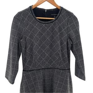 NWT Banana Republic Gray Windowpane 3/4 Sleeve Scoop Neck Casual Dress Size 6