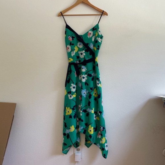 NWT Banana Republic Green Floral Spaghetti Strap Handkerchief Hem Dress