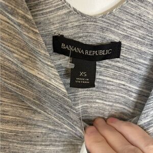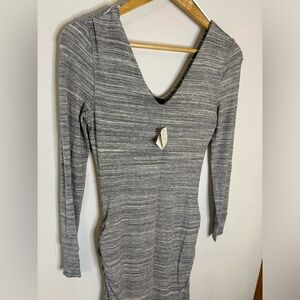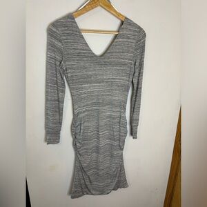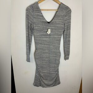 NWT Banana Republic Heather gray jersey knit spandex V neckline ruched sides long sleeve midi dress. Great for office wear, career, comfortable and cozy knit with elegant classic style. Size XS. (H)