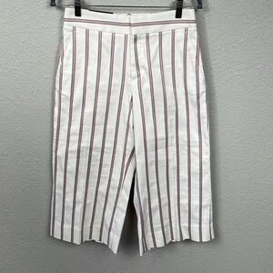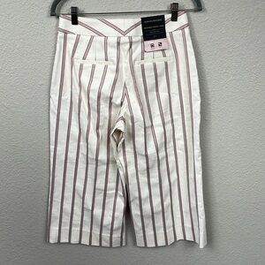 NWT Banana Republic High Rise Wide Leg Crop Pants Linen Blend White Red Stripe