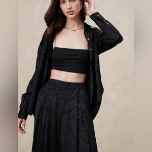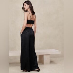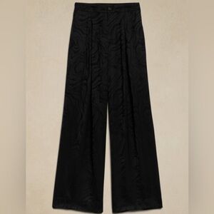 NWT! Banana Republic Jacquard Blac Silky Pleated Wide-Leg Pants - Size 8 Petite🤎