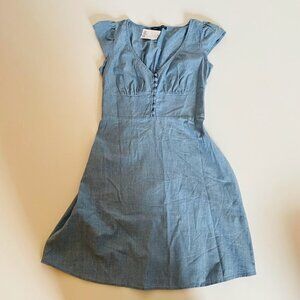 NWT Banana Republic Legging Chambray Ruffle Button Down Front Mini Smocked Blue