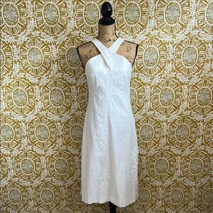 Banana Republic Linen Blend Crossover Neck Midi Dress in White. Size 6P, new with tags. Retail $160, sold out style.