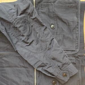 Banana Republic jacket, men's utility jacket, hooded jacket, navy blue jacket, medium size jacket, cotton jacket, outerwear, zipper jacket, stylish men's jacket.