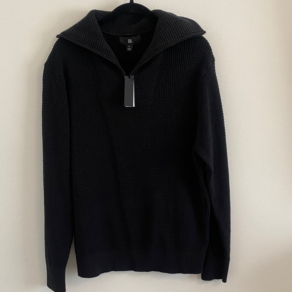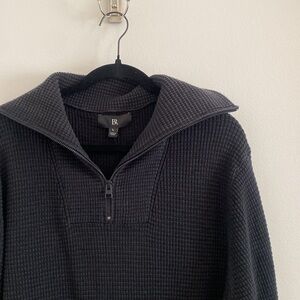 NWT Banana Republic Men's Cotton Waffle-Knit Half-Zip Sweater Black Size Large