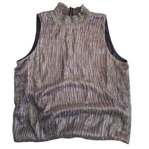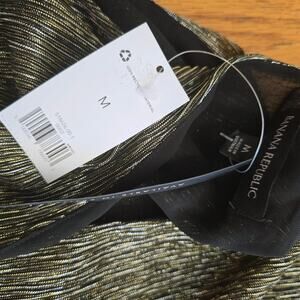 NWT Banana Republic Metallic High-Neck Blouse Wrap Back Grey Gold Size M Medium