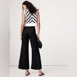 NWT! Banana Republic Mid-Rise Kick-Flare Lace-Trim Linen Ankle Pant - 12 LONG 🤎