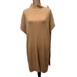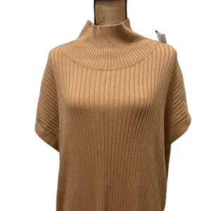 NWT Banana Republic Mock Neck Ribbed Knit Poncho Camel Tan Minimalist Size M/L