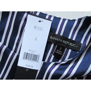 NWT Banana Republic Navy Blue PJ Stripe Asymmetrical Draped Shift Dress 2 $128