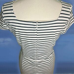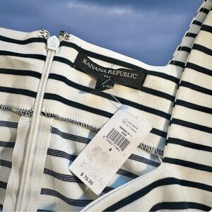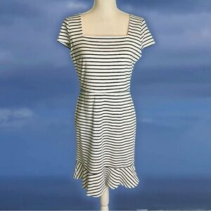 NWT Banana Republic Navy & White Striped Square Neckline Ruffled Hem Dress Sz 8