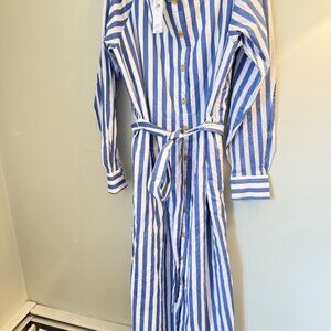 NWT Banana Republic Off The Shoulder Midi Shirt Dress Blue Stripe