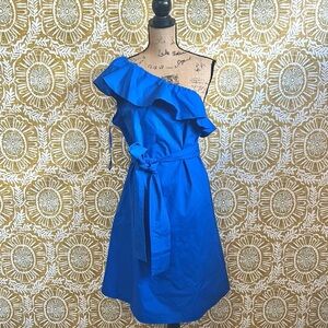 Banana Republic One Shoulder Ruffle Mini Dress in Corsica Blue. Size L Petites, new with tags. Retail $119.95, retired style.