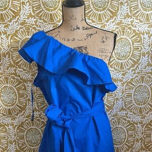 NWT Banana Republic One Shoulder Ruffle Tie Waist Mini Dress Corsica Blue Sz LP