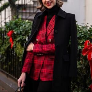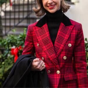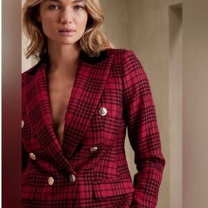 NWT Banana Republic Plaid Captain's Blazer Gold Button Velvet Red/Black Size 4