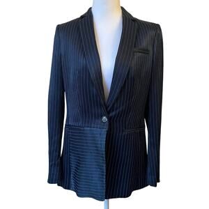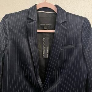NWT Banana Republic Satin Blazer Women’s Size 0 Navy Pinstripe Boyfriend Office