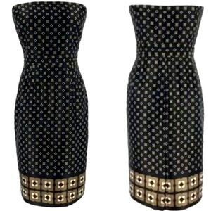 Elegant and chic, this Banana Republic strapless satin midi dress is the perfect choice for weddings, cocktail parties, graduations, and special evenings out. Featuring a geometric print inspired by luxe designer styles, this dress offers timeless sophistication with a modern edge.