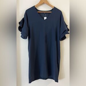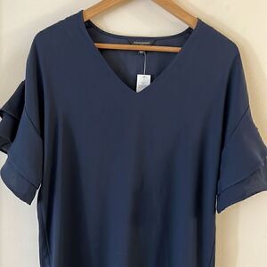 NWT Banana Republic Shift/Column V-Neck Dress with Ruffled Sleeves Navy Size 0