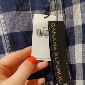 NWT Banana Republic Shirt Men's L Blue Plaid 100% Linen Button-Down Top
