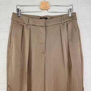 Banana Republic Silky Pleated Wide-Leg Trouser Pants 10 Petite Mocha Brown