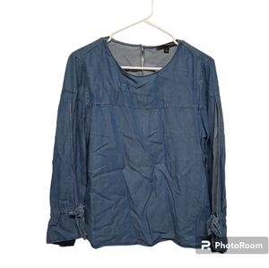 NWT Banana Republic (Small) Tie Sleeve Popover Chambray Blouse Blue