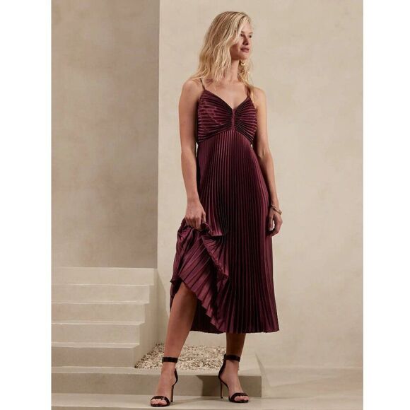 NWT Banana Republic Solaire Dark Cherry Burgundy Strap Pleated Midi Dress
