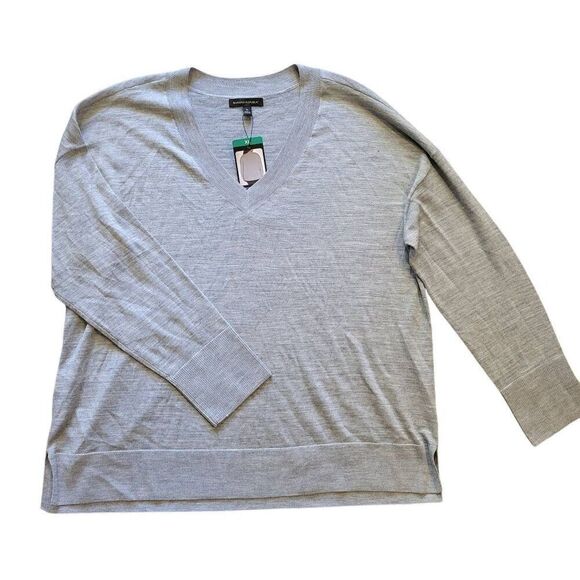 NWT Banana Republic Sweater Women's XL Grey V Neck Merino Wool Pullover