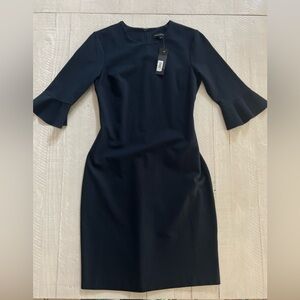 NWT Banana Republic Sz 4 Stretch Navy Shift Dress 3/4 Flutter Sleeve
