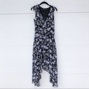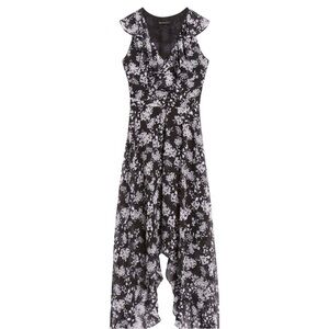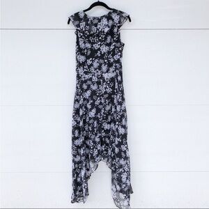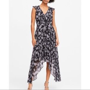 NWT Banana Republic TALL LONG Floral Ruffle Dress Handkerchief Asymmetrical Blac