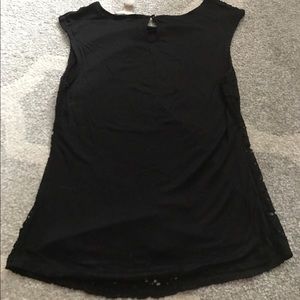 Super cute black lace sleeveless top from Banana Republic. Perfect for work or a night out. Lace front, solid back with gold keyhole button detail. Lace is a cotton, nylon and spandex blend and body is a rayon, lycra blend. Never worn, NWT.