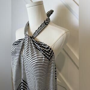 NWT Banana Republic Twist Neck Halter Midi Dress Black And White Abstract Size S