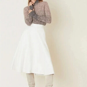 New with tags Banana Republic Vegan Leather Midi Skirt. The color is a light cream, almost white called stone washed. A line style. Very soft faux leather and feels high quality.