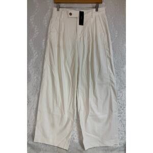 NWT Banana Republic White Linen Cotton Blend Wide Leg Pleated Pants 8 Petite**