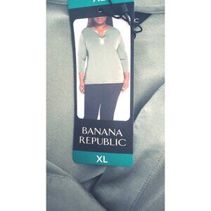 NWT Banana Republic XL Sage Green 3/4 Sleeve V-Neck Top Casual Blouse Polyester