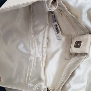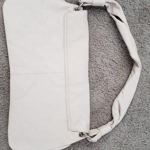 NWT beautiful, soft leather purse in ivory, winter white color with silver hardware from Banana Republic 8 x 15" (not including strap)