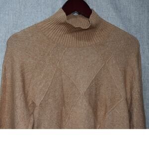 Cozy camel mock-neck sweater from Banana Republic, featuring the Repreve recycled fiber blend. Soft, mid-weight knit with a diamond-patterned front and ribbed neckline, cuffs, and hem. Classic neutral tone that pairs well with denim, trousers, or layered looks. New with tags.