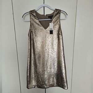 NWT Banana Republic Gold Sequin V-neck Sleeveless Sheath Dress
