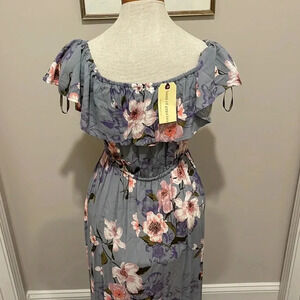 NWT!! Band Of Gypsies - Blue/Pink Floral MIDI Dress - Size Medium
