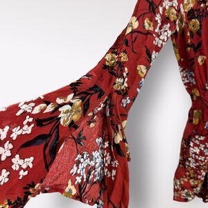 NWT Band of Gypsies Women's Tied Long Bell Sleeve Red Floral Summer Romper Small