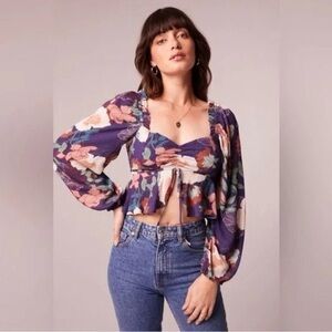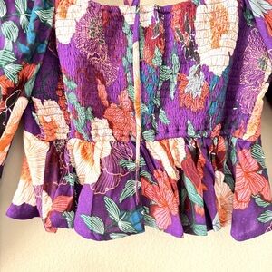 This beautiful long sleeve blouse by Band of the free features a vibrant floral pattern and a flattering sweetheart neckline. The pullover closure and balloon sleeves add to the comfortable and stylish design. Smocked back.